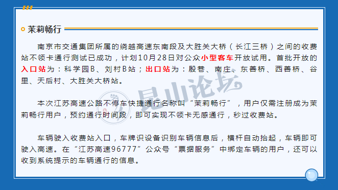 本次江苏高速公路不停车快捷通行名称叫“茉莉畅行”,用户仅需注册成为茉莉畅行用户,预约通行时间段,即可实现不领卡无感通行,秒过收费站。