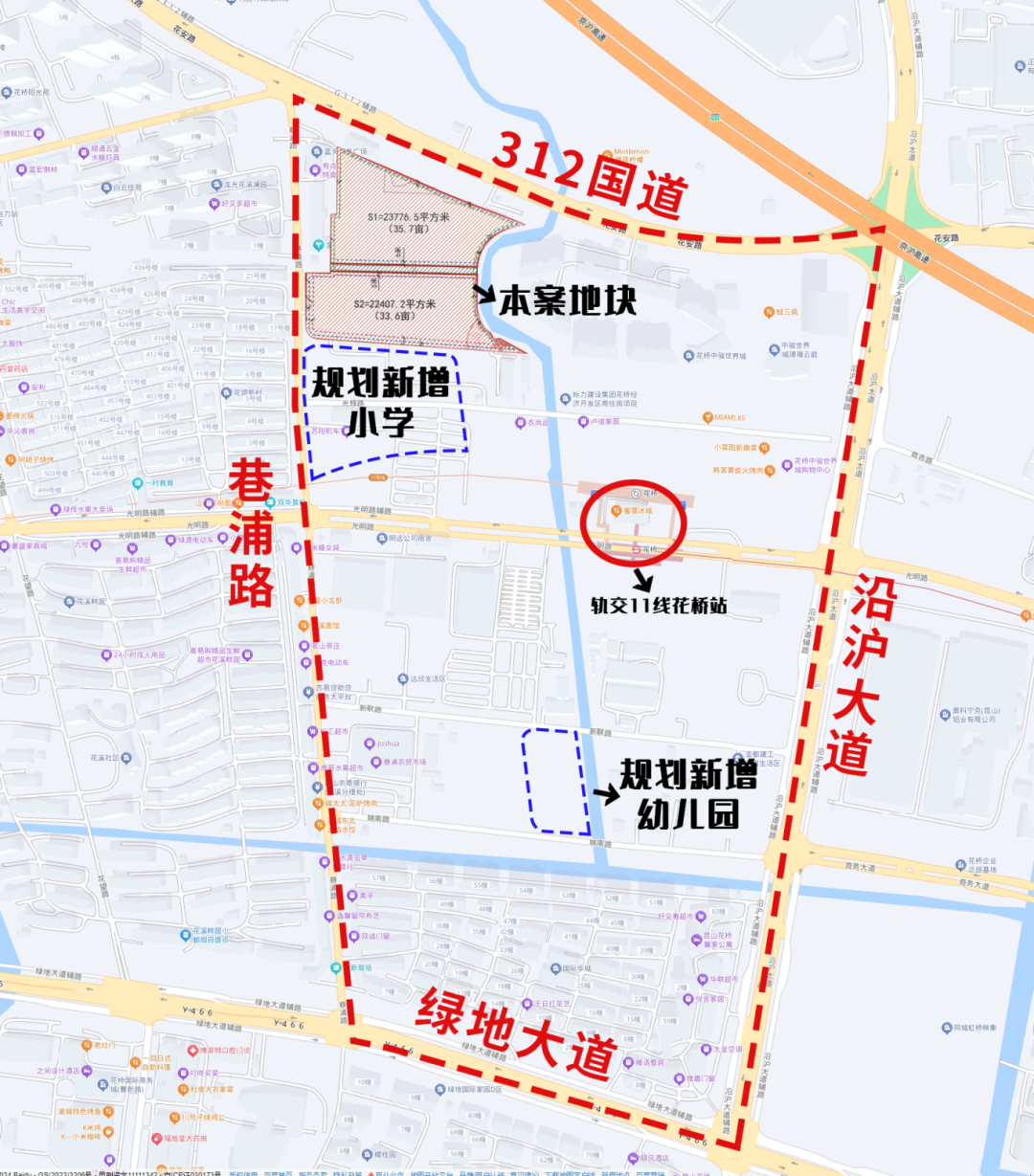 地块位于花桥312国道南侧、巷浦路东侧,右侧邻近花桥璟禧云庭+商业综合体中骏世界城,根据HQ0309、HQ0313街区详细规划,地块周边还将新增4宗涉宅用地以及两宗教育用地。