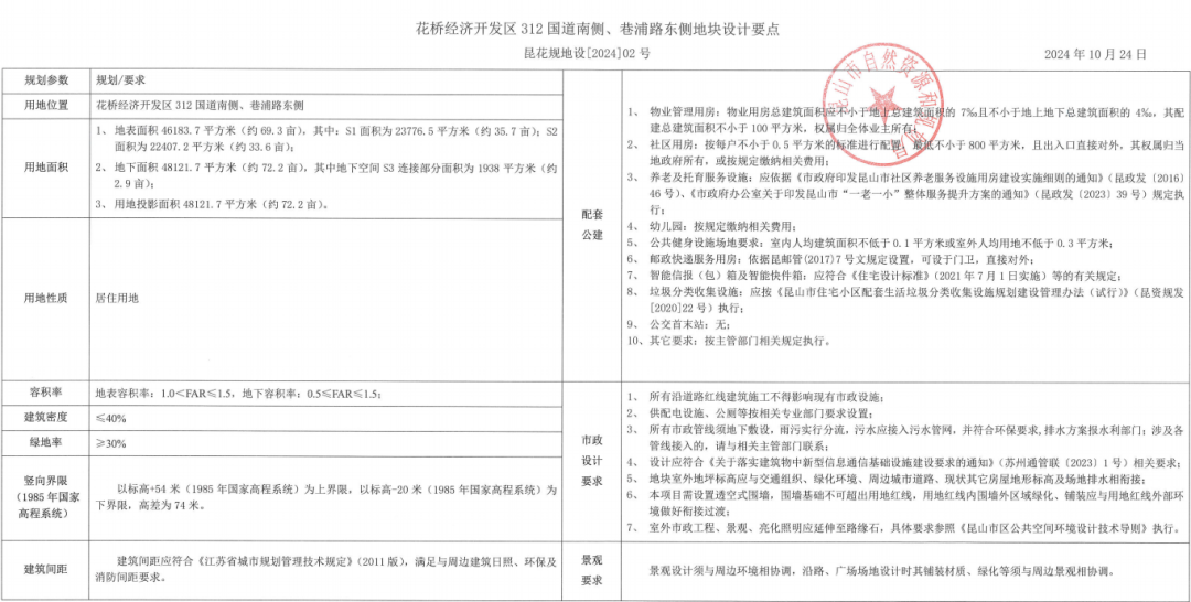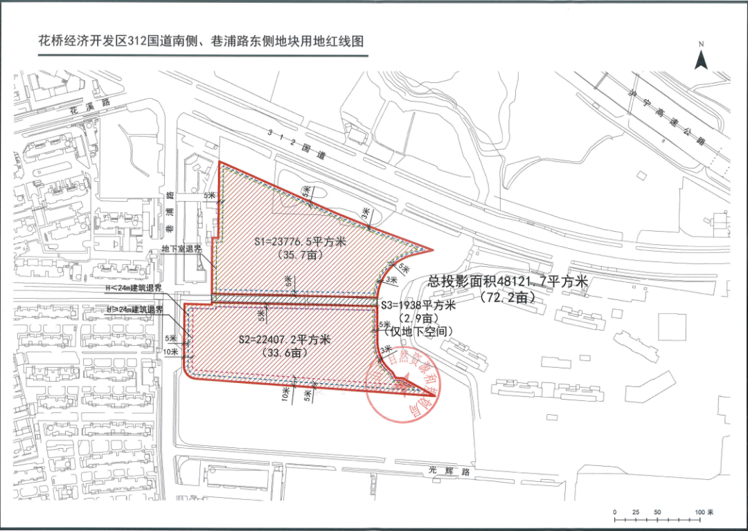 3.本次出让用地投影面积48121.7平方米,其中地表面积46183.7平方米(分为S1面积23776.5平方米,S2面积22407.2平方米),用途为住宅;