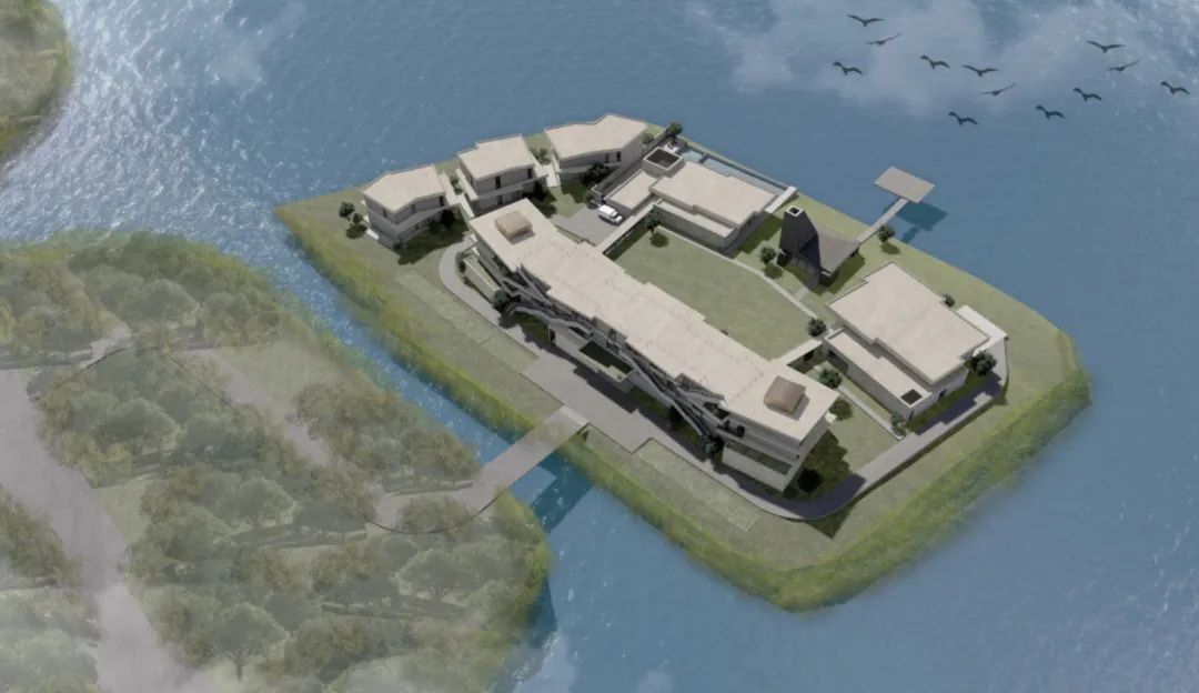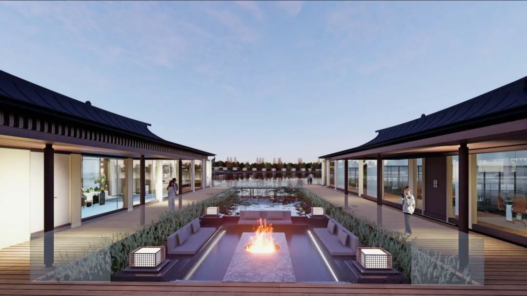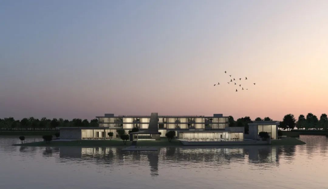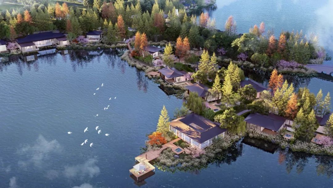 项目位于锦溪镇五保湖东侧的湖心半岛,占地面积约13333平方米,规划客房40余间,是日本著名设计师青山周平在度假区设计的第二座酒店,其设计将现代简约风格与文艺清新气息完美融合,旨在打造一个远离都市喧嚣的理想度假目的地。