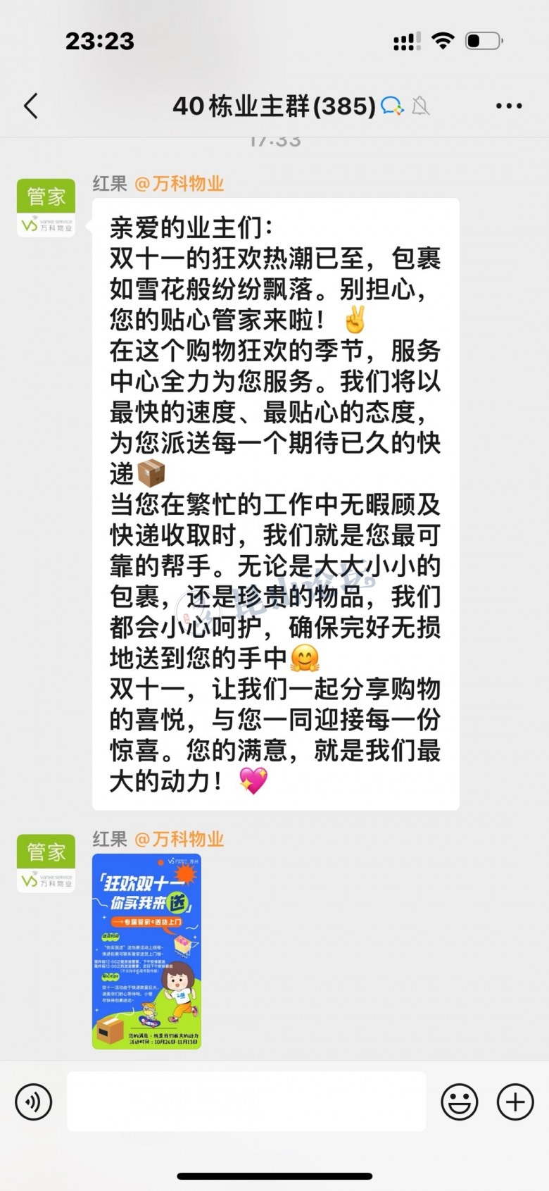 [网友爆料]万科物业就是周到,双十一怕我们快递太多,还要送上门 [复制链接]