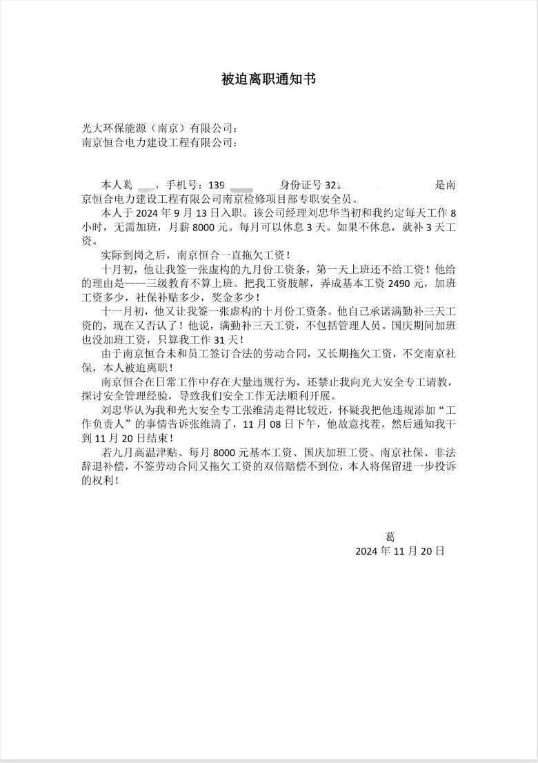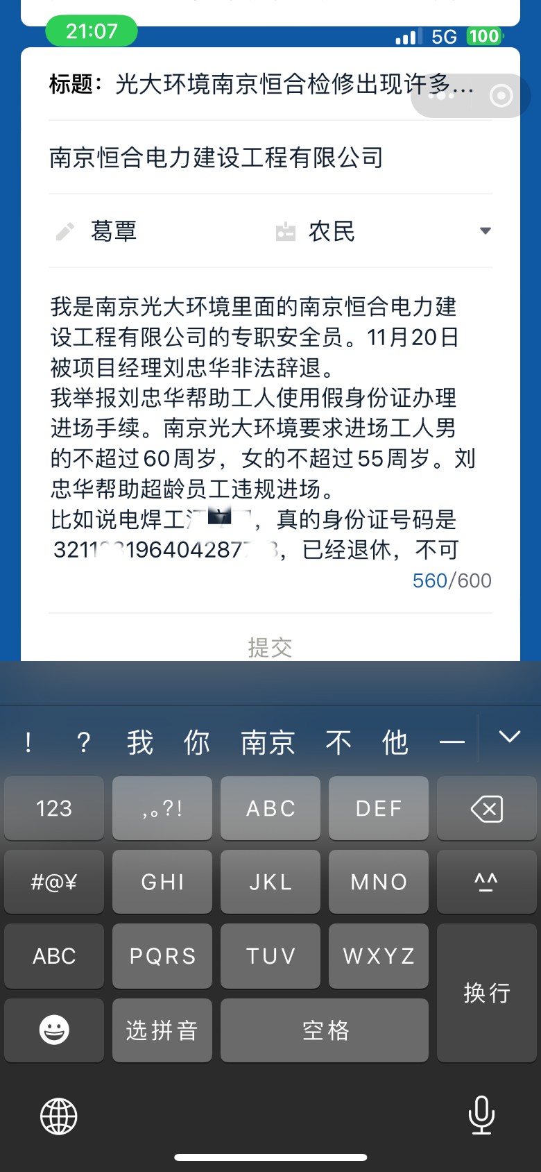 想不到光大环境某经理不是要求南京恒合按照劳动法,劳动合同法,安全生产法办事,而是出馊主意,叫他们举报我作品。现在我抖音账号被处罚十天。减少推荐,关闭私信。说我违反公序良俗!我就坚持投诉!有理有据!