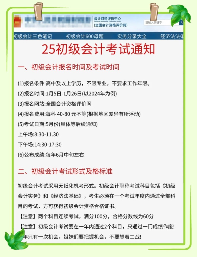 [教育]2025年会计初级备考,会计证报考,1月份左右开始报考 [复制链接]