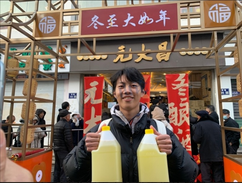 今年21岁的学生叶贵华是现场第一位零拷的顾客,他举起手中刚零拷的冬酿酒激动地说道。昨晚9点半,他便和同学从昆山坐地铁赶到这里“蹲守”了一夜。