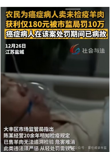 无关部门:去细看了一下,被媒体描述的“农民”虽然其农民身份可能不假,但实际上却是一位2000年登记的个体工商户,从事羊肉相关生意20多年,所卖羊肉为自行收购屠宰活羊且未经检验检疫的羊肉,货值金额共计9607.2元,都要毛一万块钱的未检疫羊肉了,罚10万你觉得高吗?。另外,这位“农民” .. (2024-12-27 10:49)
