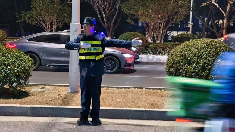 在烟花盛放的时刻,他们无暇欣赏美景,目光始终聚焦在川流不息的车水马龙上。警灯闪烁与保安制服的反光条相互辉映,照亮的是大家奔赴新年的道路。他们放弃了与家人团聚的时刻,坚守在岗位上,用责任与担当,为昆山的跨年烟花秀编织出一张安全、有序的交通网。