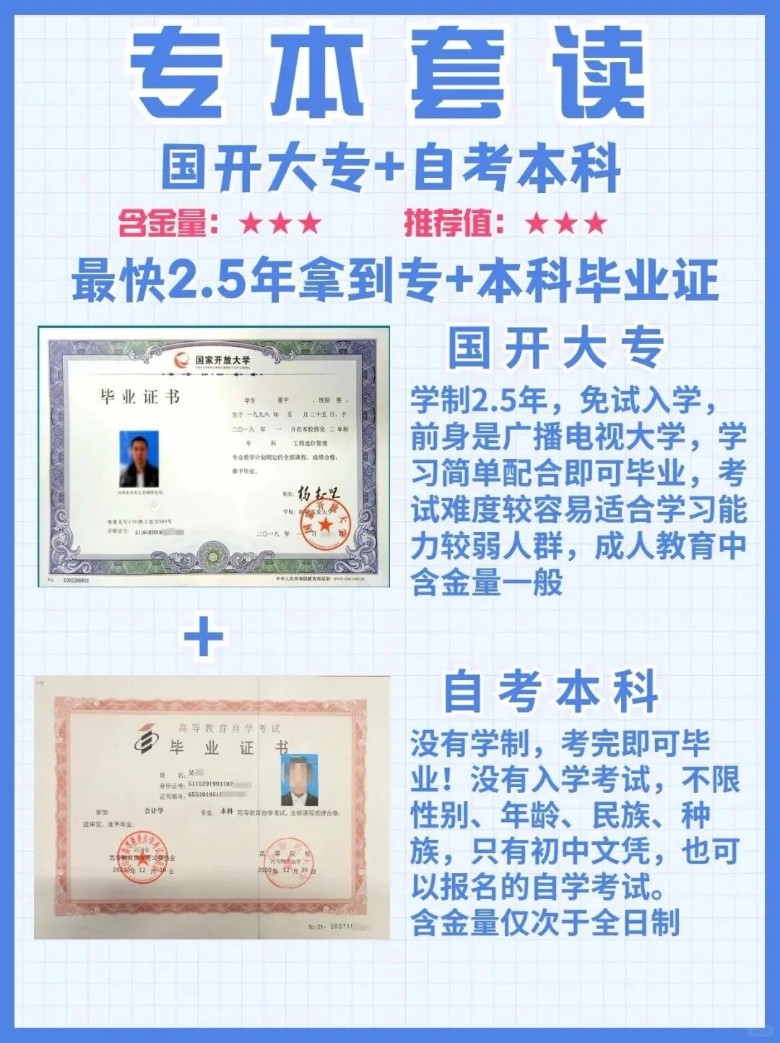1️⃣专科在校生:全日制专科在读期间,报考自考本科,一般大一报名,考试顺利的话专科毕业后就能同步考完所有自考本科科目,申请本科毕业证。