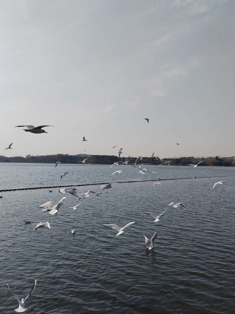 昨天周六一起去了无锡蠡湖看红嘴鸥(周五晚饭那会,我跟他说我想去),很冷,很满足~