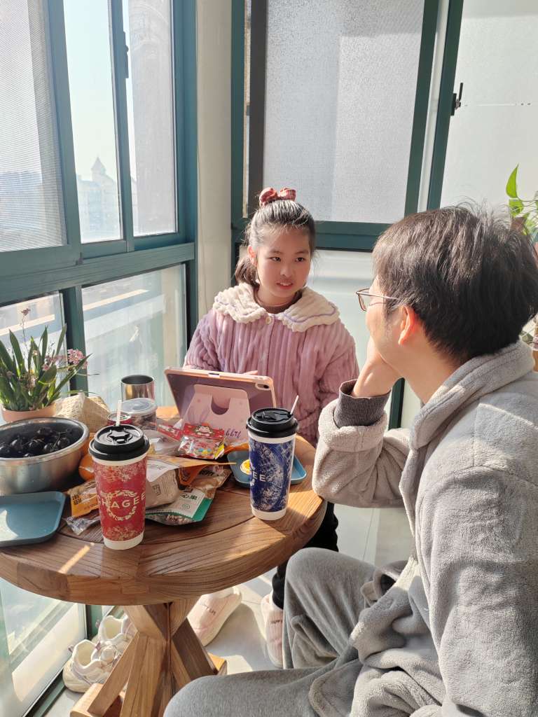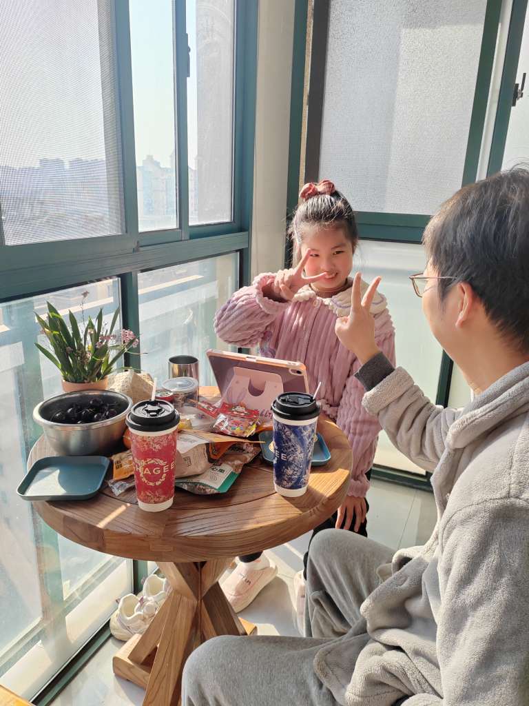 吃完哪也不想去了,带着两杯霸王茶姬,回家晒太阳……一家三口阳台上吃吃晒晒聊聊天,嘻嘻哈哈一下午,给逗比有爱的父女两抓拍了几张照。岁月静好的模样,有你们真好,喜欢生命里出现的一切,陪着我一年又一年……