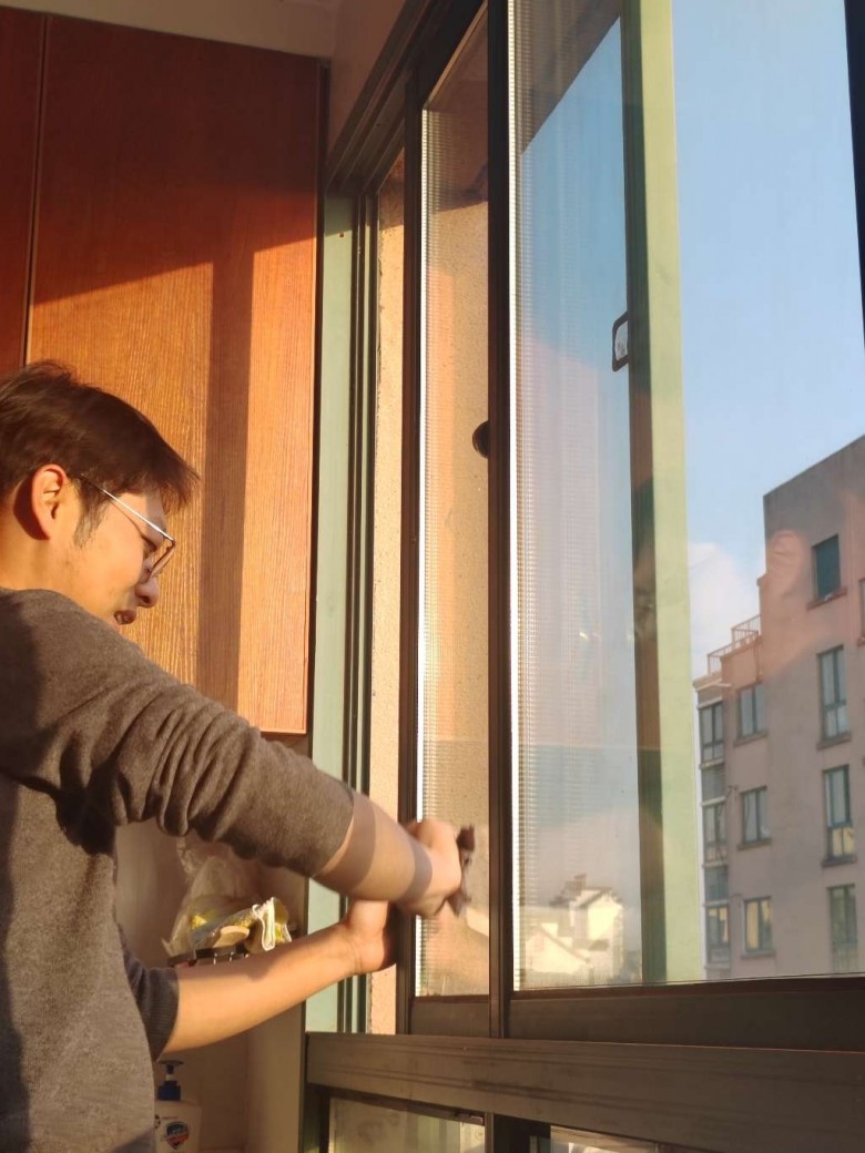 嗝~~嗯,这男人还顺便把窗户玻璃擦了下,真干净……阳光洒在他侧脸的那一刻,是柔软的~