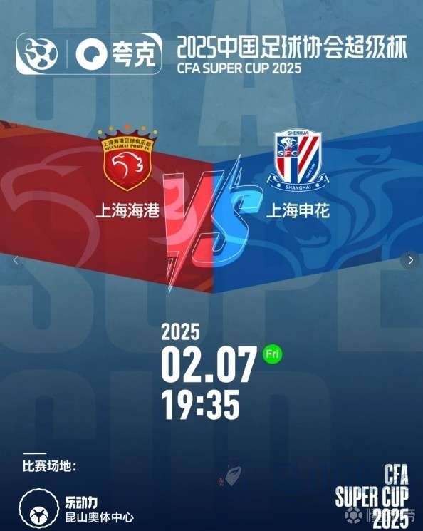 2024赛季的中超冠军、足协杯冠军上海海港和中超亚军上海申花将在乐动力昆山奥体中心体育场展开超级对决,为争夺2025年首个中国足球协会顶级赛事奖杯火力全开!
