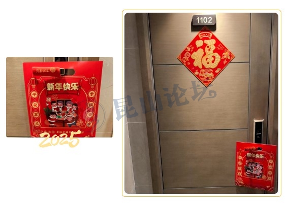 春节将至,新一年新气象,为营造欢乐祥和的节日气氛,向小区业主家人们送上新春的祝福,同嘉物业睿怡庭服务中心举办“迎新春·送祝福”主题活动,精心为睿怡庭小区业主每家每户准备对联福字大礼包,承载着对新年的美好期许,给您添年味、增喜气。 活动开始,工作人员提前分配好所要赠送的区域,挨家挨户亲手为业主送上寓意祝福的大福袋,如有不在家的业主,会将春联挂在入户门的门把手上,并发送祝福信息,提醒业主回家就可以看见。在物业送去祝福的同时,并致电没有办法回来过年的业主,询问是否需要帮忙张贴春联,如需贴春联,我们会为业主张贴上喜庆的春联。 物业工作人员将这些带着温度的福字、春联送到业主们手中,接过这份特殊礼物的业主们,脸上洋溢着幸福的笑容,纷纷表示:同嘉物业睿怡庭服务中心太贴心啦!福袋里的春联福字