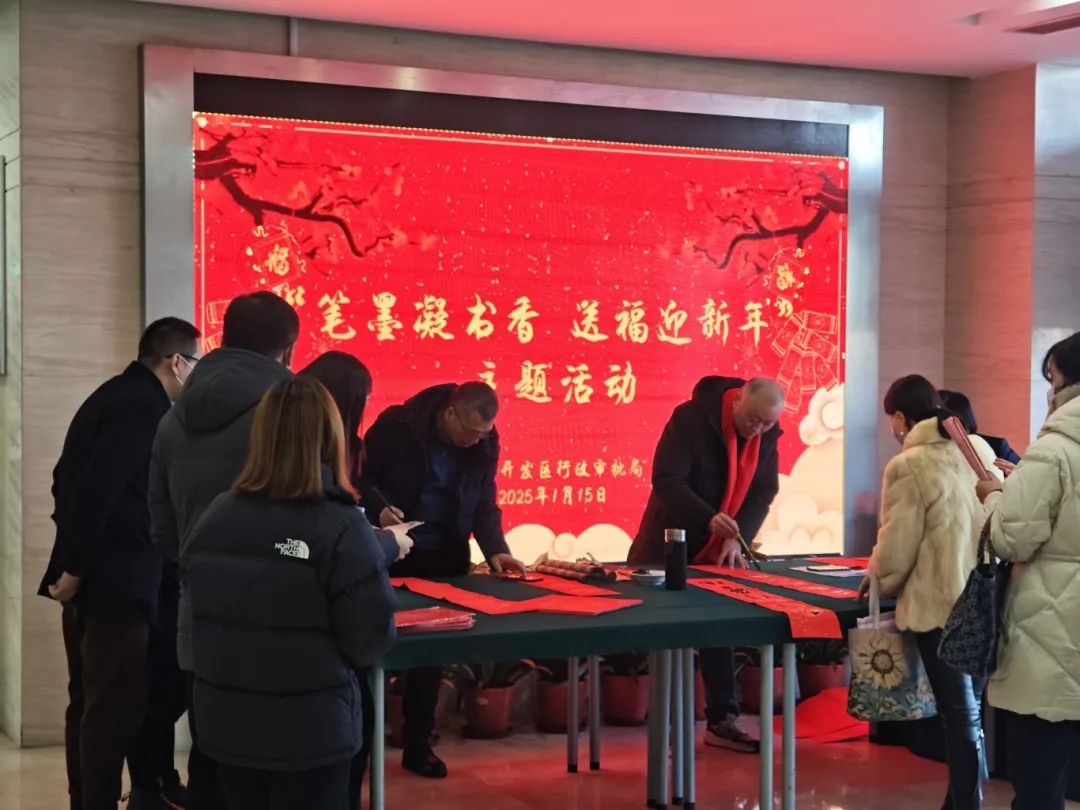 在送春联进机关活动中,机关干部职工和书法家们齐聚一堂,书写出一副副寓意吉祥、充满祝福的春联,表达对新年的美好期许,让大家在忙碌的工作之余,感受到新春的气息和温暖。