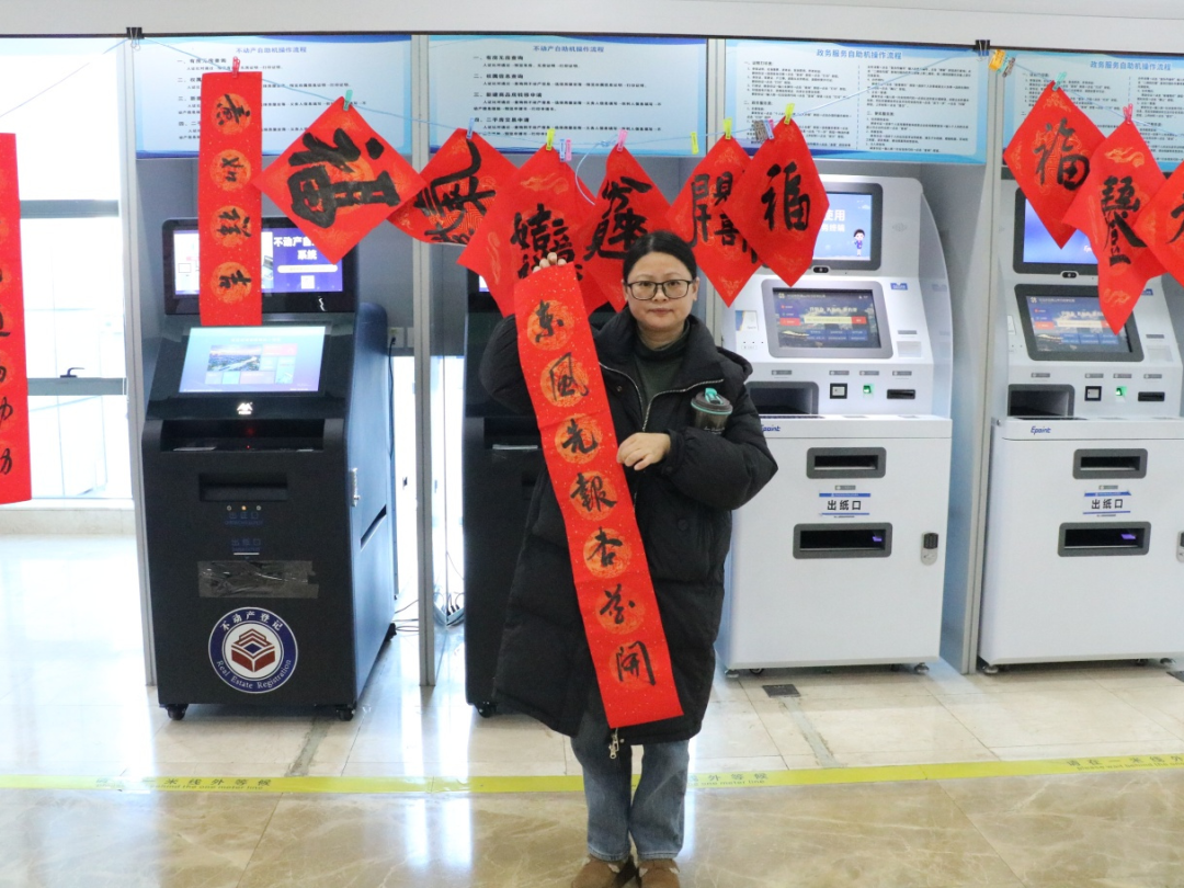 区行政审批局举办“笔墨凝书香 送福迎新年”写春联送祝福活动,为坚守在岗位上的窗口工作人员和广大办事群众提前送上新春的祝福,共计免费送出春联和“福”字200余幅,让政务服务的温暖深入人心。