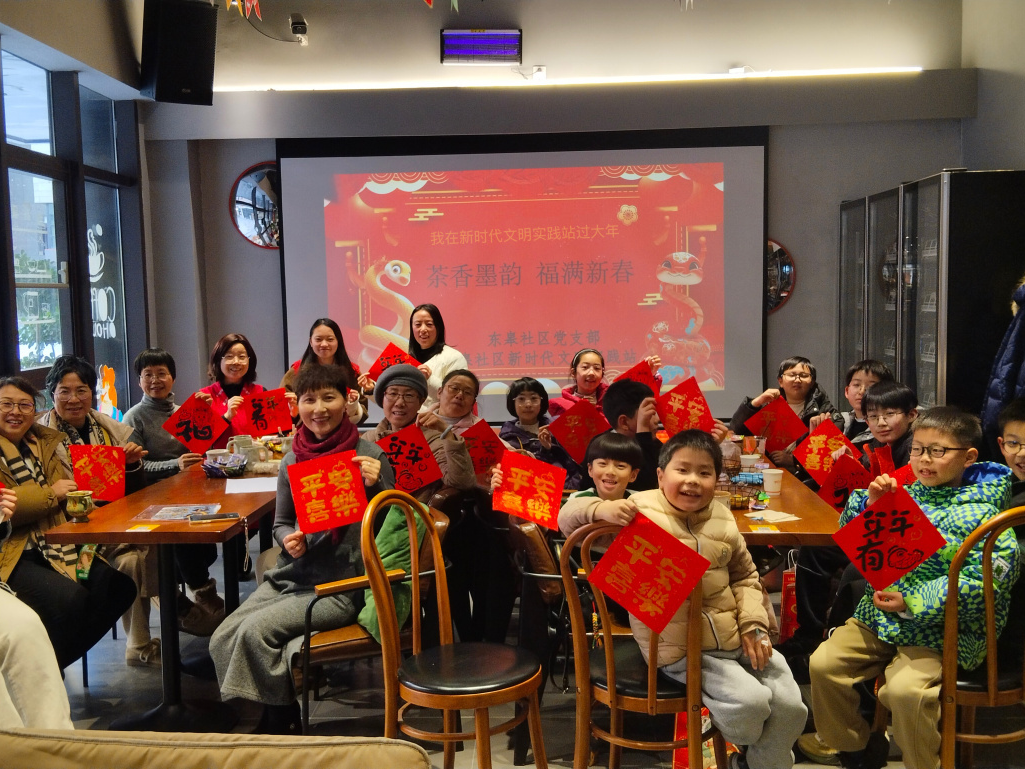 各类弘扬非遗文化的活动轮番开展,散发着浓厚的艺术气息。志愿者以生动有趣的方式娓娓讲述春节由来与传统习俗。居民们聚精会神投入到非遗手作创作中,五谷“福”字画、精美“柿子花”、蛇年贴画、福字拓印……一幅幅饱含新意的作品新鲜出炉,在用心的手工艺创作中,实现和传统文化的深度碰撞。