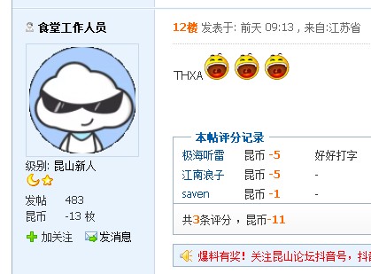 阿炳来了 昆币 +1 -来自昆山论坛APP 02-14