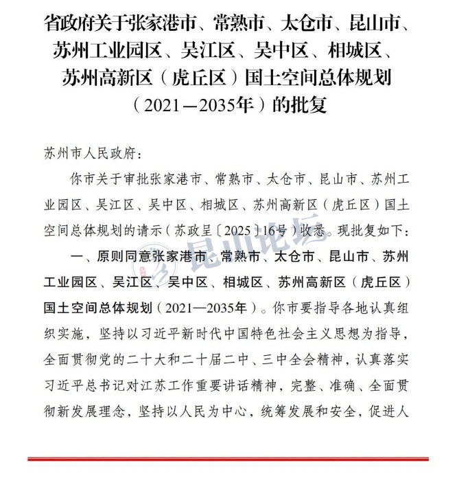 近日,《省政府关于张家港市、常熟市、太仓市、昆山市、苏州工业园区、吴江区、吴中区、相城区、苏州高新区(虎丘区)国土空间总体规划(2021-2035年)的批复》发布。