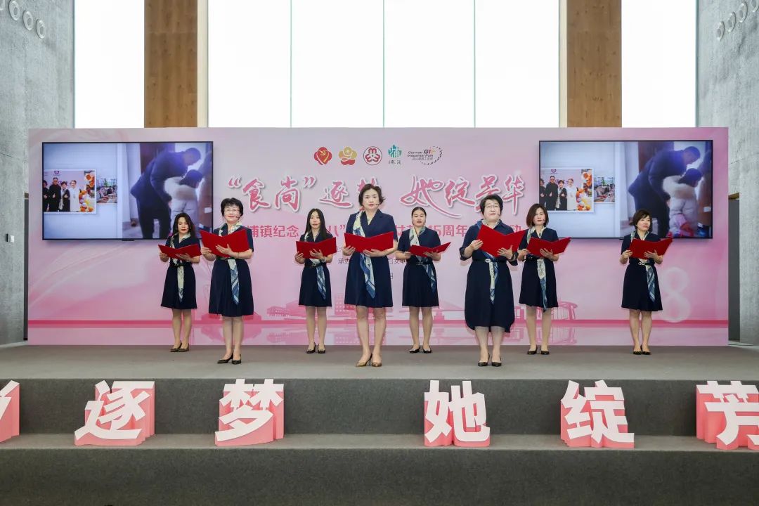 活动现场,成立了“食尚”乡间巾帼主理人联盟,主理人罗娟分享了金华村的“食尚”故事,将乡村的美食、美景、美物更好地推广出去;张浦镇女企业家协会的女企业家们带来朗诵《巾帼流芳,淞南隽秀》,展现了新时代女性在推动社会进步,共同打造“食尚张浦”城市品牌中的坚韧与智慧;昆山市阳光家庭互助中心负责人缪欣欣推介了“链上‘5S’阅读服务体系”项目,让阅读在研发间、生产间、营销间等场景中生动实践;来自张浦震阳实验学校的学生队伍带来连厢表演《奔跑吧蜗牛》,展现张浦产业文化与传统文化的融合篇章。