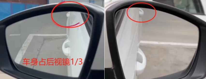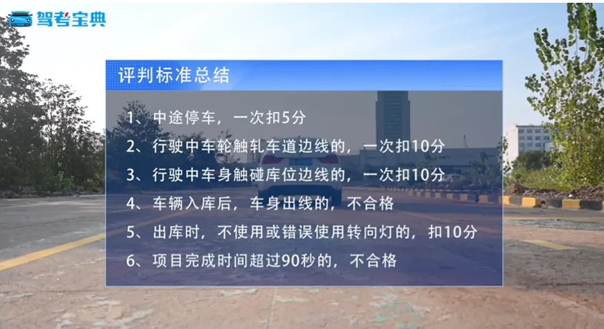 2. 入库时,待车身完全进入库内后,注意观察两边的后视镜,看车身是否已回正,一旦回正立即停车,以防后方车身压线或出线导致挂科。