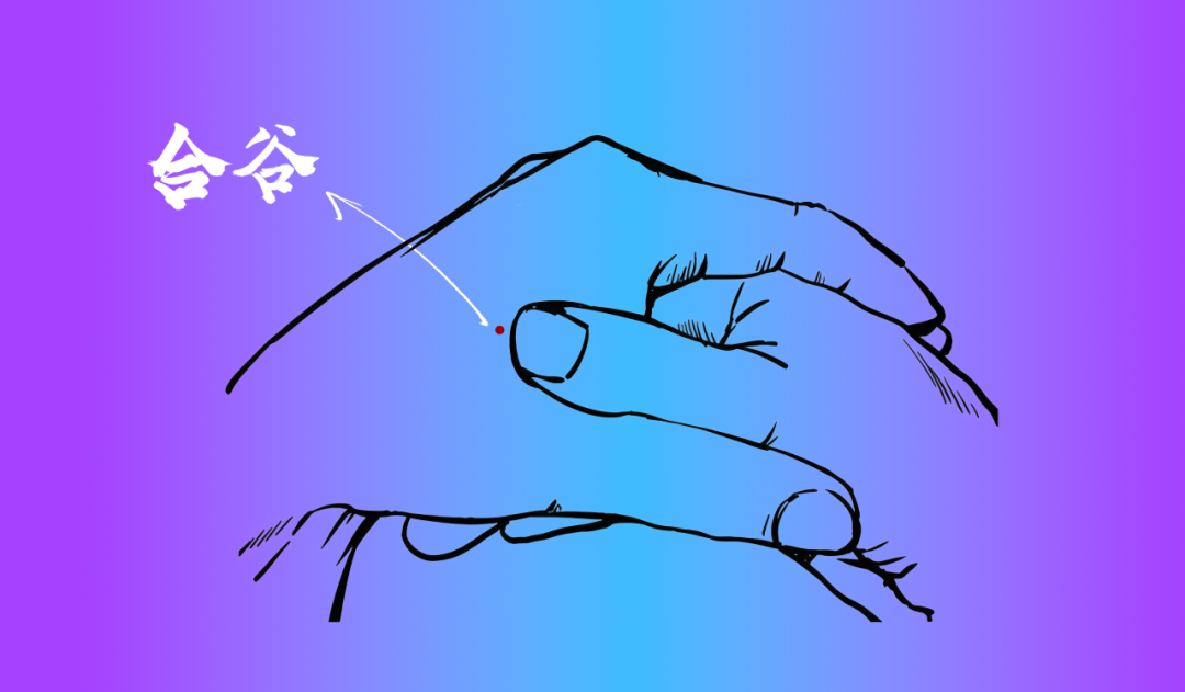 定位:手背虎口处,第一、二掌骨间凹陷。
