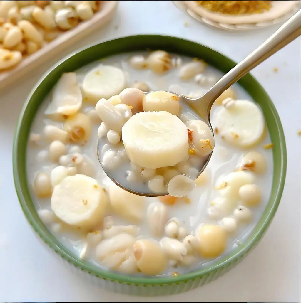 做法:薏米、茯苓浸泡2小时,山药切块。所有材料加水1000毫升,文火熬煮1小时。