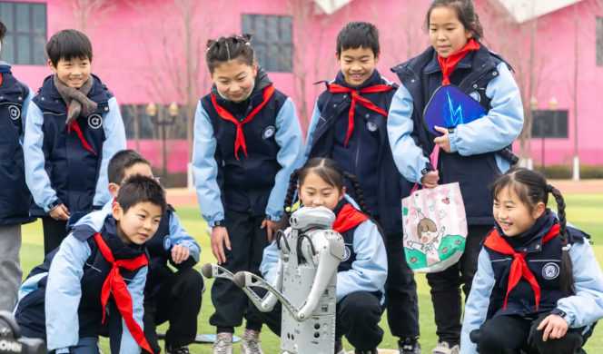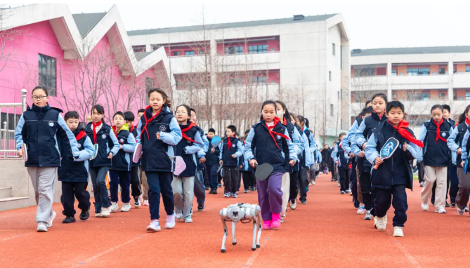 在大课间活动中,机器狗不仅是一个领跑者,更是一个“智能教练”。它能够根据学生的运动状态调整速度,还能通过语音提示帮助孩子们保持正确的运动姿势。