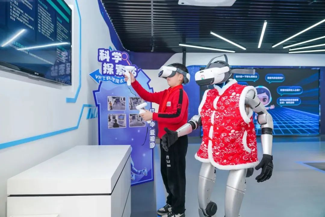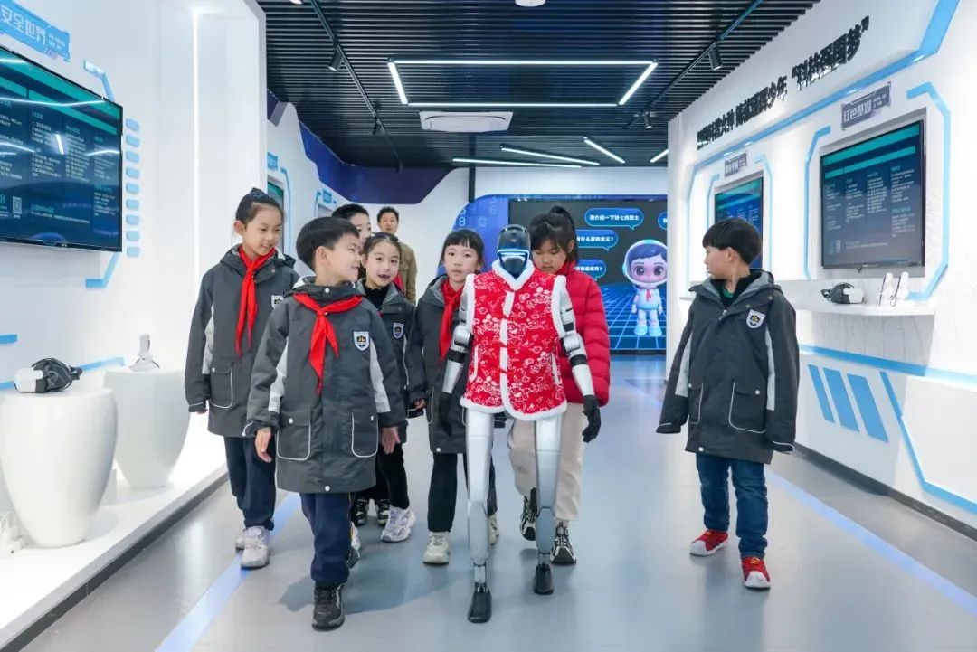 随后,机器人在孩子们的指引下,分别走进院士馆,迷高训练馆以及趣味游戏区,与孩子们开展更为密切的互动…