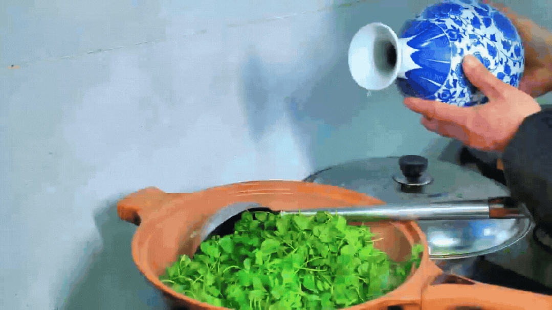 叶片由翠转深后起锅