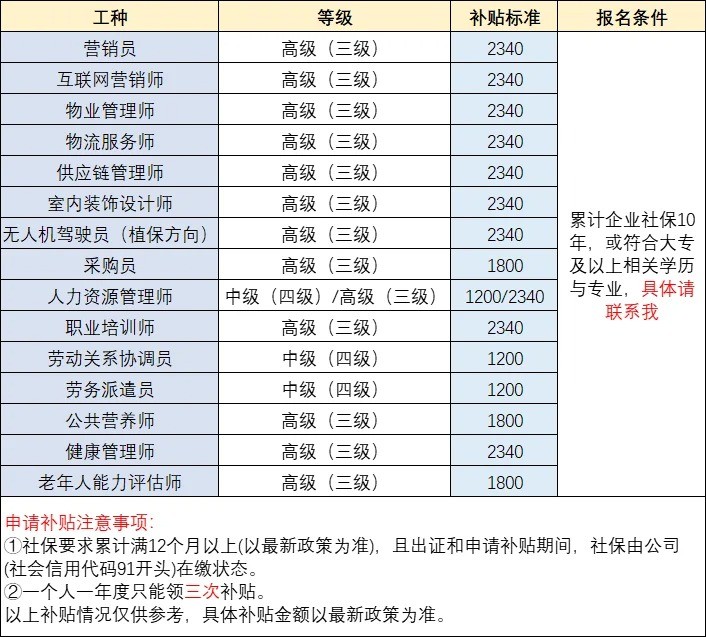 四、申报条件 认定申报条件按照《国家职业标准编制技术规程(2023年版)》第一部分附录5《申请参加职业技能评价的条件》(附件1)执行。 参加2024年5月、11月全省统一认定初考单科未通过人员可进行补考;初考单科合格成绩超过一年的考生,须重新申报认定。 以上申报年限计算截至2025年4月30日。 考生于2024年7月后,已取得不同职业或不同工种技能等级证书/职业资格证书的,或同职业同工种不同等级证书的,暂不予通过审核。