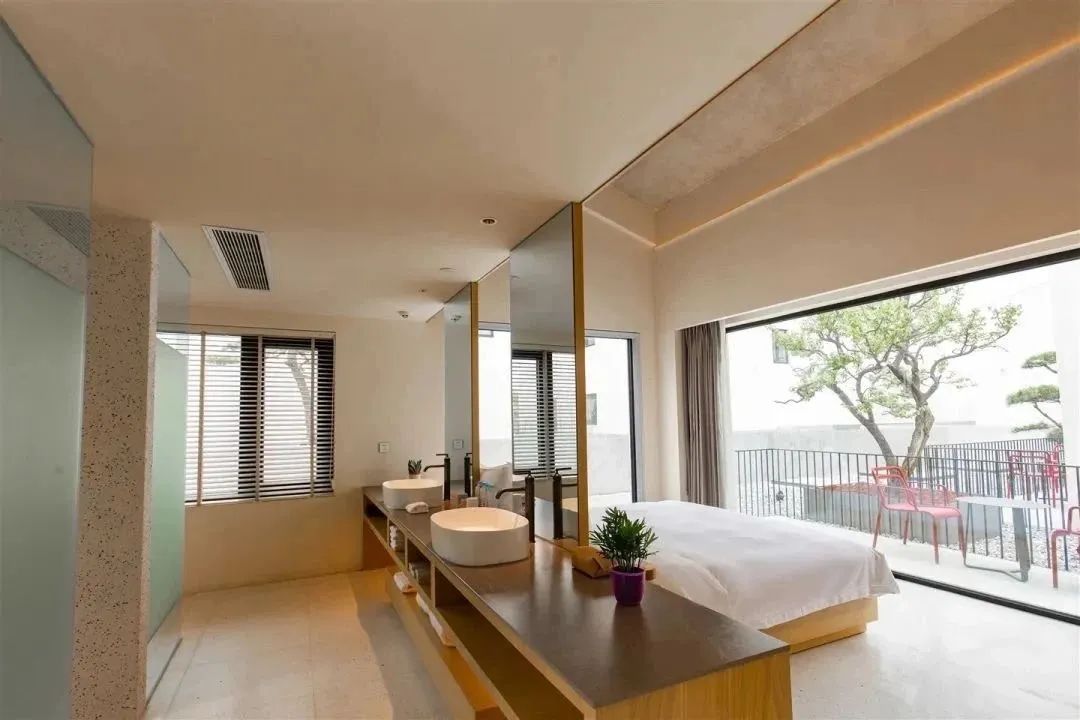 江南·半舍三面环水,绿植环绕,白墙斜顶,步步皆景。从河对岸望去,建筑被“分割”成上下两半,勾勒出“半”与“舍”的禅意空间。14间客房各具特色,搭配茶室、书吧、临河餐厅等公共区域,满足度假、文化体验与小型活动需求。