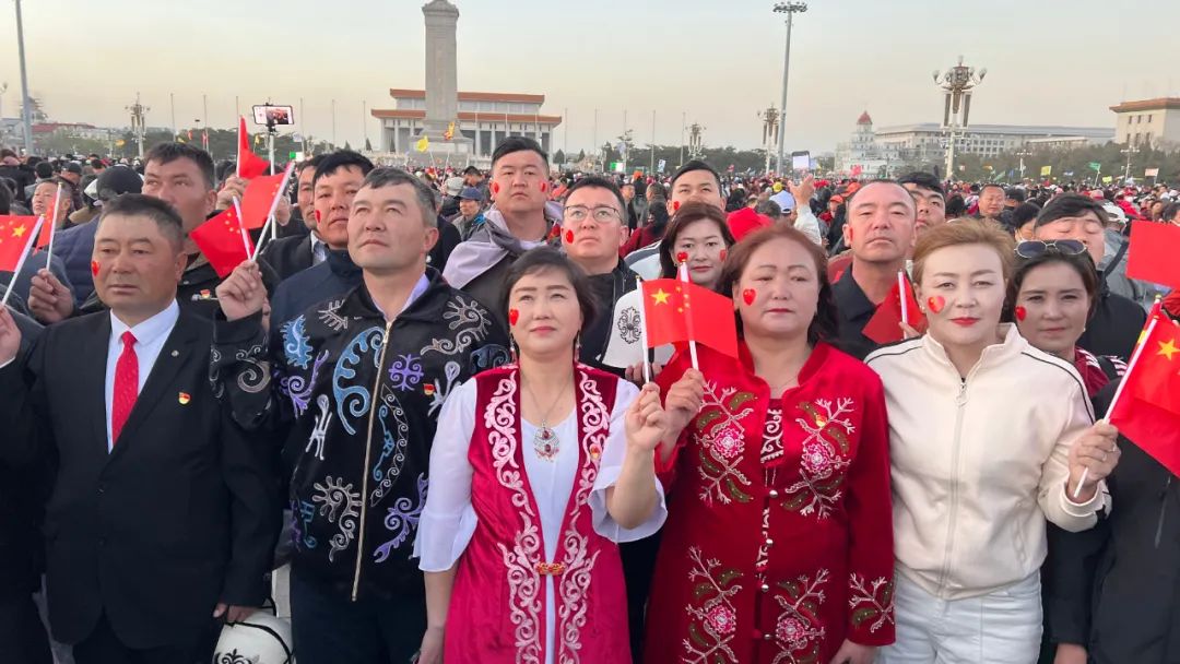 晨曦微露,天安门广场上春寒料峭,来自阿图什的边疆卫士们身着民族服饰、胸前佩戴党徽,眼神中透着庄重与激动,凝望着国旗护卫队迈着整齐有力、铿锵作响的步伐,从天安门城楼中走出。随着激昂的国歌声响起,五星红旗冉冉上升,吐古买提乡护边员吐尔地·吾斯曼的手紧紧攥住衣角,激动的泪水在眼眶打转:“我一直以来的梦想就是到北京天安门广场看升旗,从前只能手机、电视里看,今天站在这里,真切感受到‘中国’两个字的分量。”