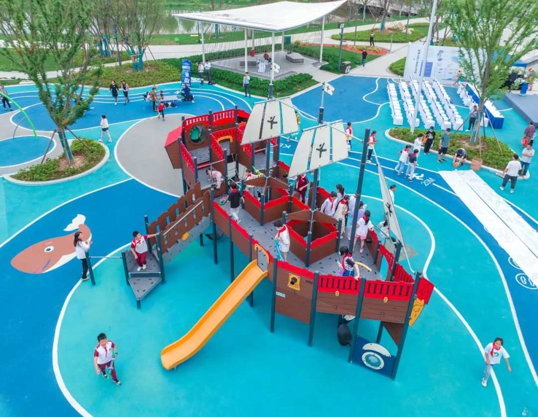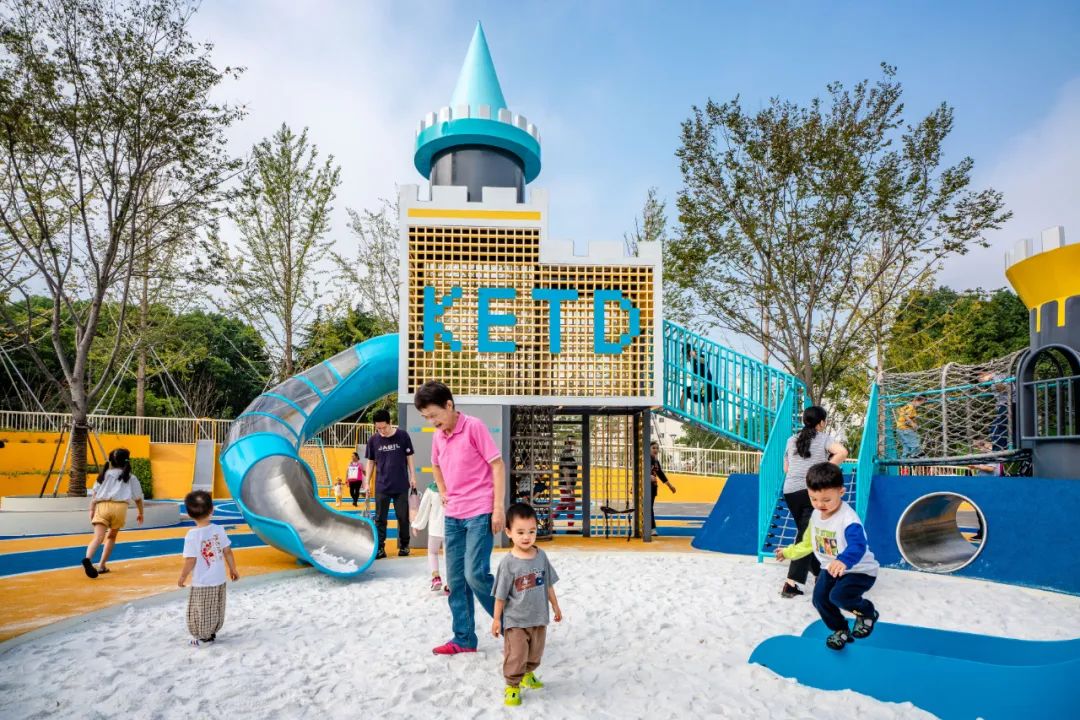 昆山市儿童公园设计秉承“公园·社区·家”的发展主题,促进儿童活动场地与城市公园绿地的融合共生,用家门口的“童话城堡”定格童年美好时光,令更多的儿童像在自家客厅一般游玩。