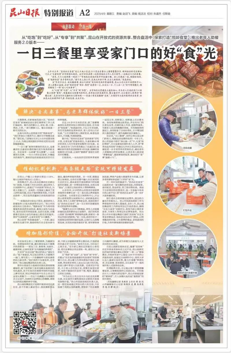 从“吃饱”到“吃好”,从“专享”到“共聚”,昆山在开放式的资源共享、整合盘活中,探索打造“悦龄食堂”,推出老年人助餐服务2.0版本——