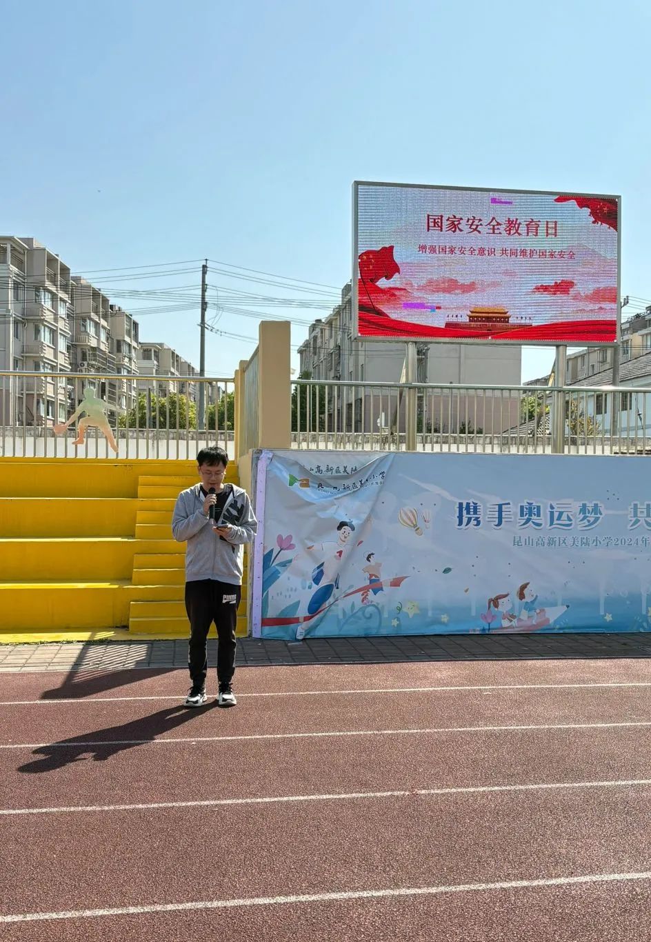美陆小学通过全体教师会议、电子屏宣传、国旗下讲话等方式,向全体师生介绍国家安全的基本概念、法律法规以及如何维护国家安全等内容,引导广大师生提升防范和抵御安全风险能力。