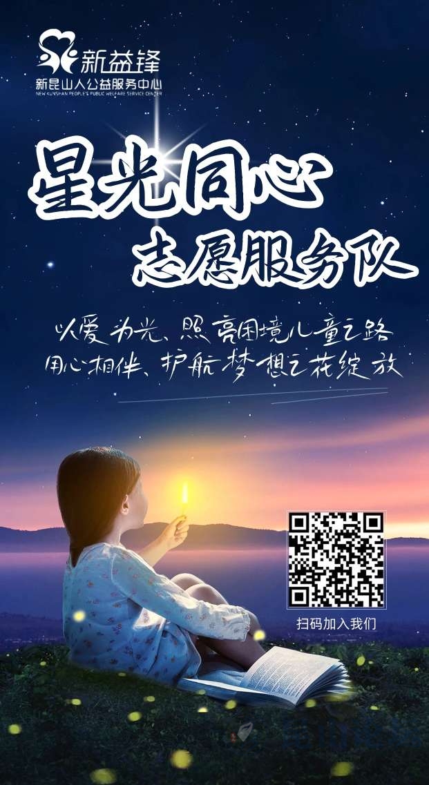 星光同心志愿服务队为昆山新益锋新昆山人公益服务中心下设志愿服务队伍之一。成立于2025年3月26日,是以困境儿童为主要服务对象的志愿者队伍。