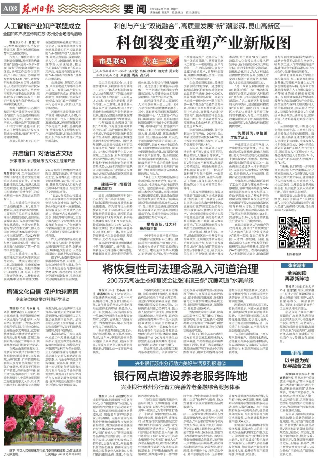 创新资源加速集聚,催生创新主体百花齐放。2024年,昆山高新区完成专利授权6442件,其中发明专利授权1629件,万人高价值发明专利达45件。