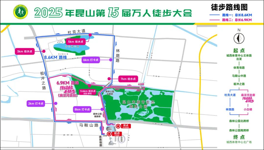 路线一:2025徒步大会非家庭组人员沿用去年徒步线路,全程约8.6公里。