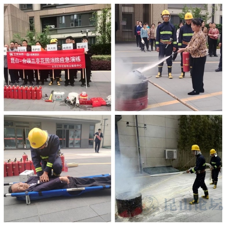 消防演练是检验消防安全管理水平的重要手段。和融物业昆山公司各项目精心组织了包括初期火灾扑救、火场协调指挥、人员疏散引导、伤员救护在内的多项实战演练。其中,特别值得一提的是,部分项目邀请了社区党组织、业主委员会等社会力量共同参与,不仅夯实了演练的群众基础,也提高了演练的实际应用价值。此外,还有一线消防专家亲临现场指导,确保了演练的专业性和有效性,大大提升了参演人员面对突发火灾时的应急处置能力。
