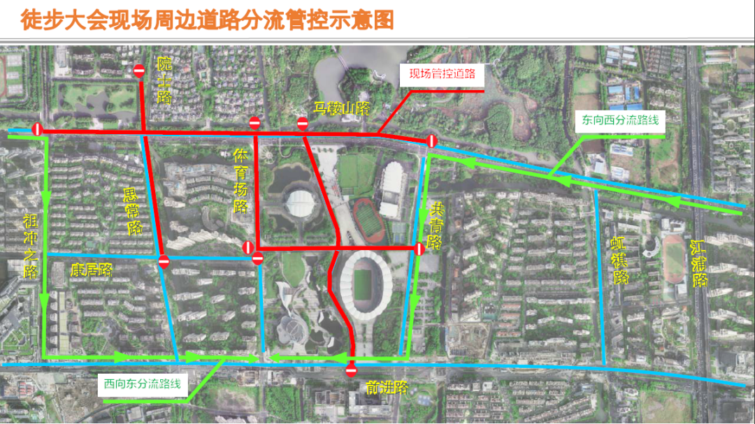 文体路(体育馆路-体育场路)、仁爱路(体育馆路-共青路)禁止车辆东西双向通行。管控期间,停在文体路体育馆6号门停车场的社会车辆,可以通过内部道路从体育馆路的1号门驶出并进入马鞍山路。