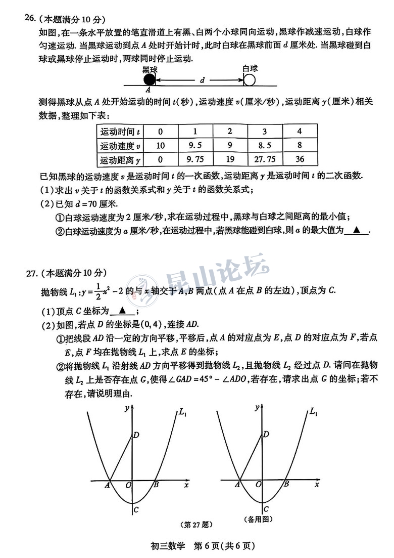 解答题26:匀变速直线运动和匀速运动的路程问题,以函数为背景把路程问题 带出,比较难的在第3问,前2问几乎没什么难度,不要一看到路程问题就心慌