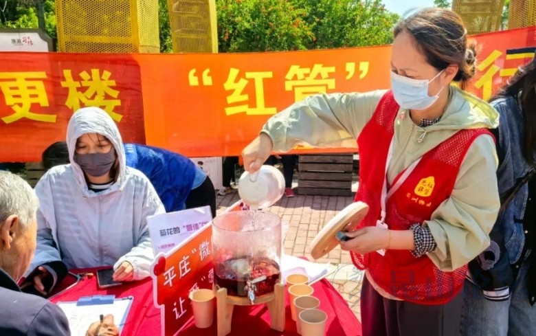 健康服务区,则由医护人员为前来咨询的居民免费测量血压、血糖,细心叮嘱日常注意事项,传递着浓浓关怀。