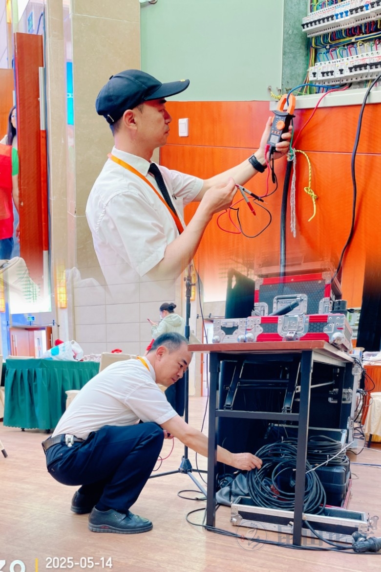活动筹备阶段,项目工程员带领团队对活动现场的电路、照明及音响设备进行多轮排查与调试,制定应急供电预案,确保用电安全-万无一失;保洁团队提前对公共区域及厕所进行深度清洁,并规划好中午用餐时段的垃圾清运路线,为活动提供整洁舒适的环境。