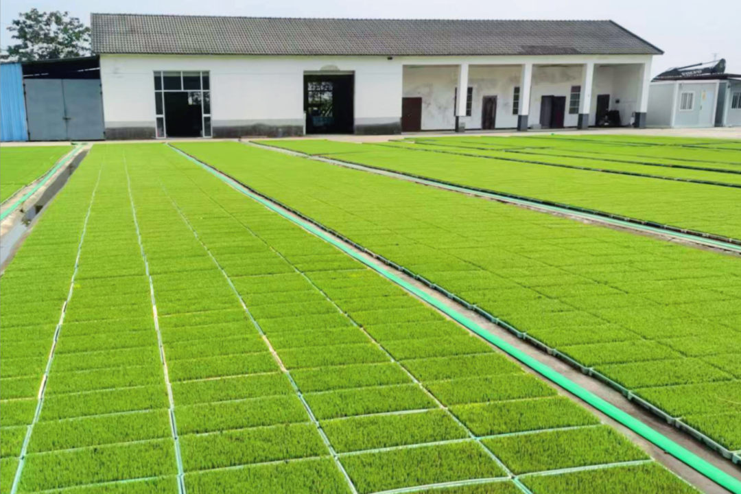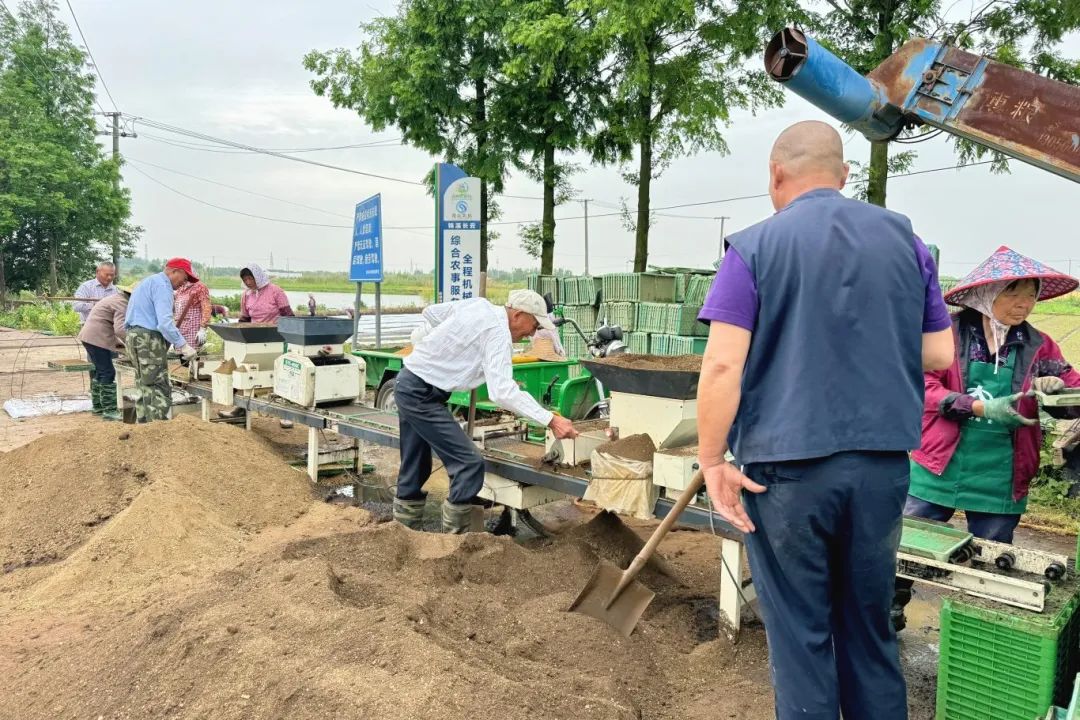 在位于锦溪镇长云村的育秧基地,一条自动化水稻育秧流水线正高效运转,育秧盘相继在流水线上完成铺基质、洒水、播种、覆土等工序。一旁的农民将生产线上育好的秧盘及时摆放到秧田内,为培育壮苗做好准备。“机械化育秧不仅育秧效率高、移栽方式灵活,而且育出的秧苗质量好、出苗齐,能够让机械化插秧更加方便,实现科学种植,提高劳动效率,保障水稻丰收。”育秧基地负责人介绍道。