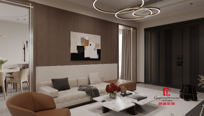 考虑到未来将有三代同堂共同居住,且家庭成员年龄跨度较大,因此在风格上选取了客户一家人接受度更高的现代风,同时融入简奢的调性,打造出一套兼具时尚感与舒适度的多元摩登住宅。