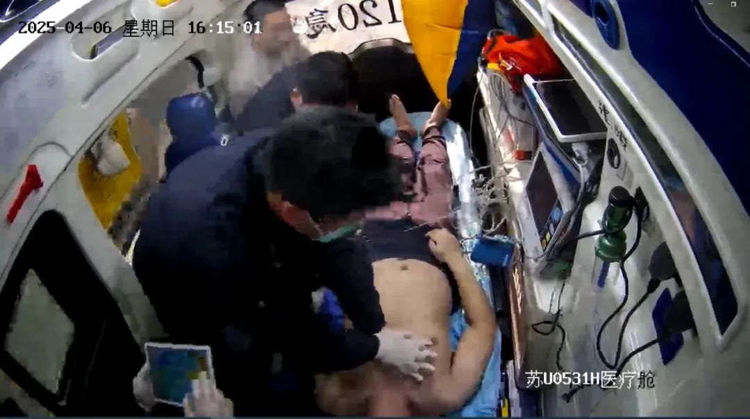 急救人员抵达现场后,立即接手抢救。患者被判断为呼吸心跳骤停,情况万分危急!医护人员持续进行高质量心肺复苏,并紧急联系昆山市中医医院启动应急预案。