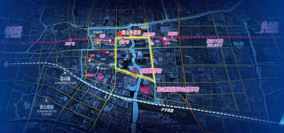 青阳港中央商务区地处昆山中心,北接苏州地铁11号线,南融沪宁铁路枢纽,30分钟直抵虹桥,28分钟低空可飞达浦东。按照市委、市政府“老城区焕新、新片区塑形、全领域激活”导向,确定青阳港中央商务区为昆山“城市之心”。