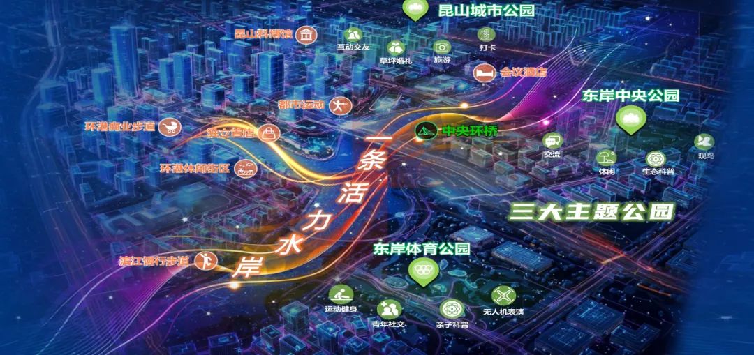 从“昆山之路”到“城市之心”,青阳港始终是昆山发展的最强引擎。按照规划,青阳港中央商务区3.4平方公里范围内的5000亩土地上,将以500亿元项目投资,建设250万平方米地上开发规模,形成总部商务区、环港商业区、中央品质生活区、青年创业园和两大生态宜居组团等六大功能板块,打造产城融合、创新创业的热土。