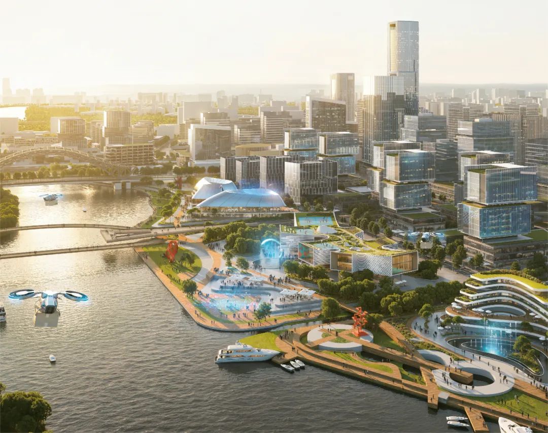 生态韧性、全龄友好。青阳港中央商务区依托生态优势,将串联8公里黄金水岸,12公里慢行步道,构建1000亩蓝绿交织的环城滨水公园,新建全地下污水厂,上盖体育生态公园,实现“城区即景区”。