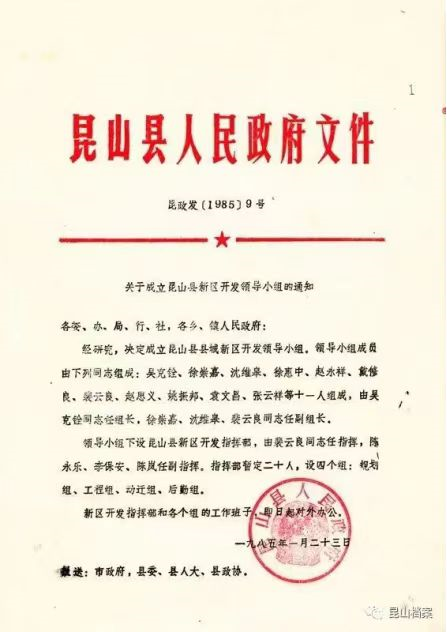 1984年8月21日,经昆山县人大常委会审议,通过了昆山县政府三年(1984年至1986年)工作规划。随后,昆山工业新区(昆山开发区的前身)建设全面启动。专门成立了“昆山县新区开发领导小组”,时任昆山县人民政府县长的吴克铨兼任新区开发领导小组组长,我是副组长兼新区开发指挥部指挥。