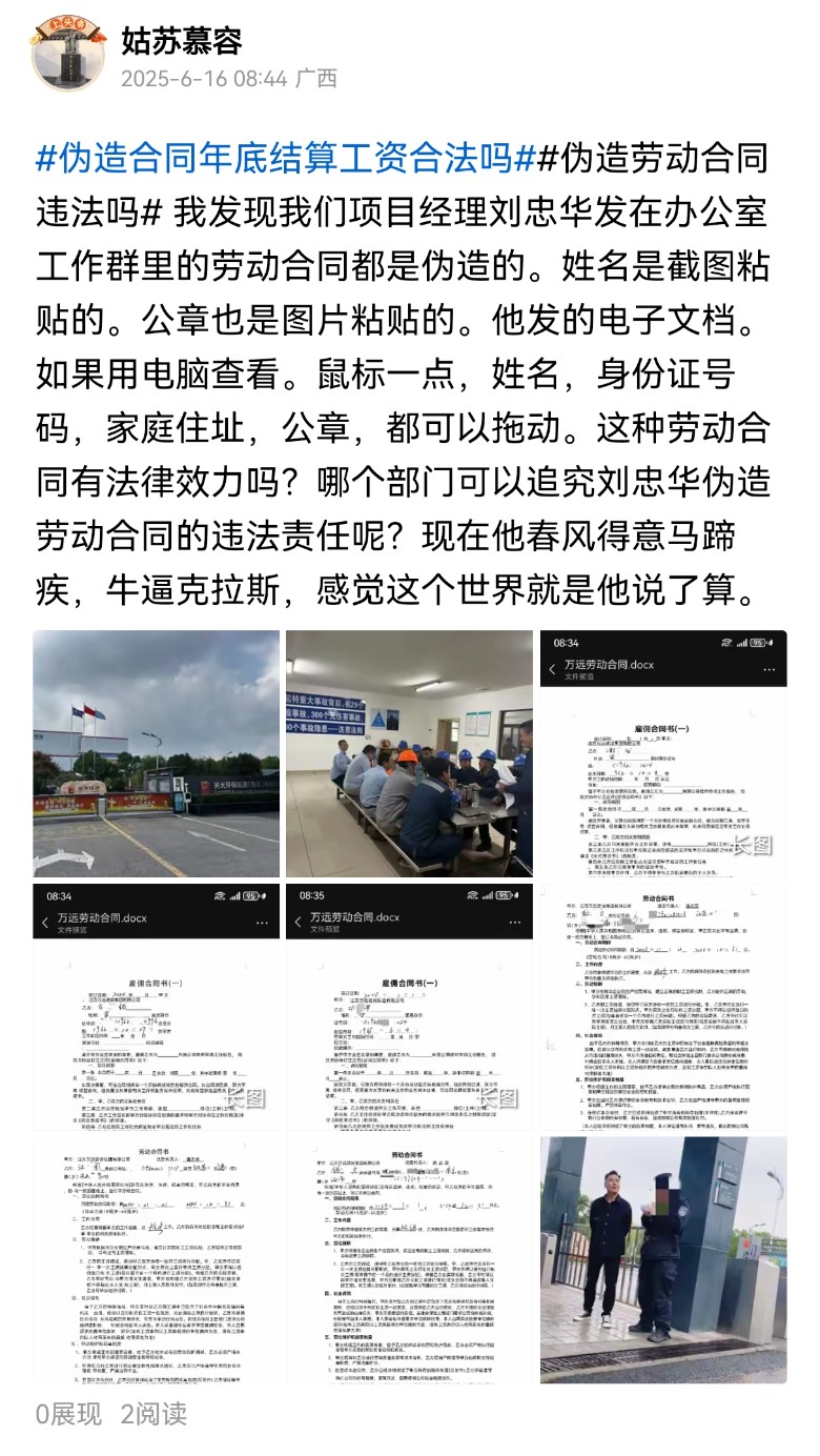 我到劳动局打劳动仲裁。我到公安局举报伪造身份证,伪造劳动合同啊。